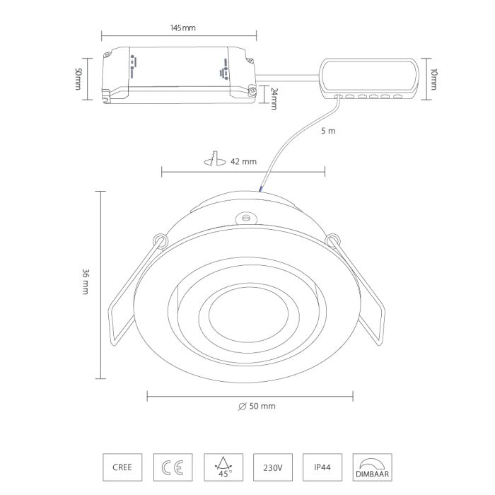 | Einbaumaß | 42 mm |
