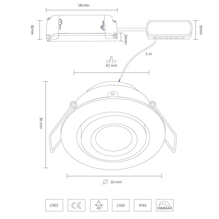 | IP Wert | Spots: IP44, Trafo: IP44 |